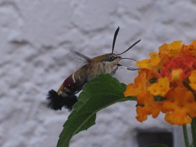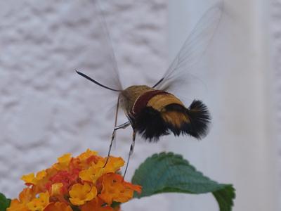 ■朝、自宅マンション下の花壇でオオスカシバを見かける。