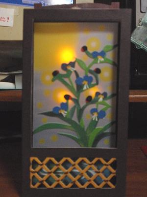 ■ボタンを押すとライトが付いて、水のせせらぎと虫の声が流れます。
